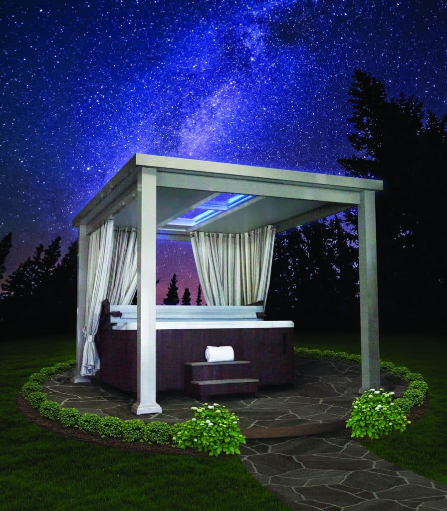 - Patio covers — Our sunlight pavilion (one of our many patio cover styles) features a polycarbonate roof that lets natural daylight pass through.